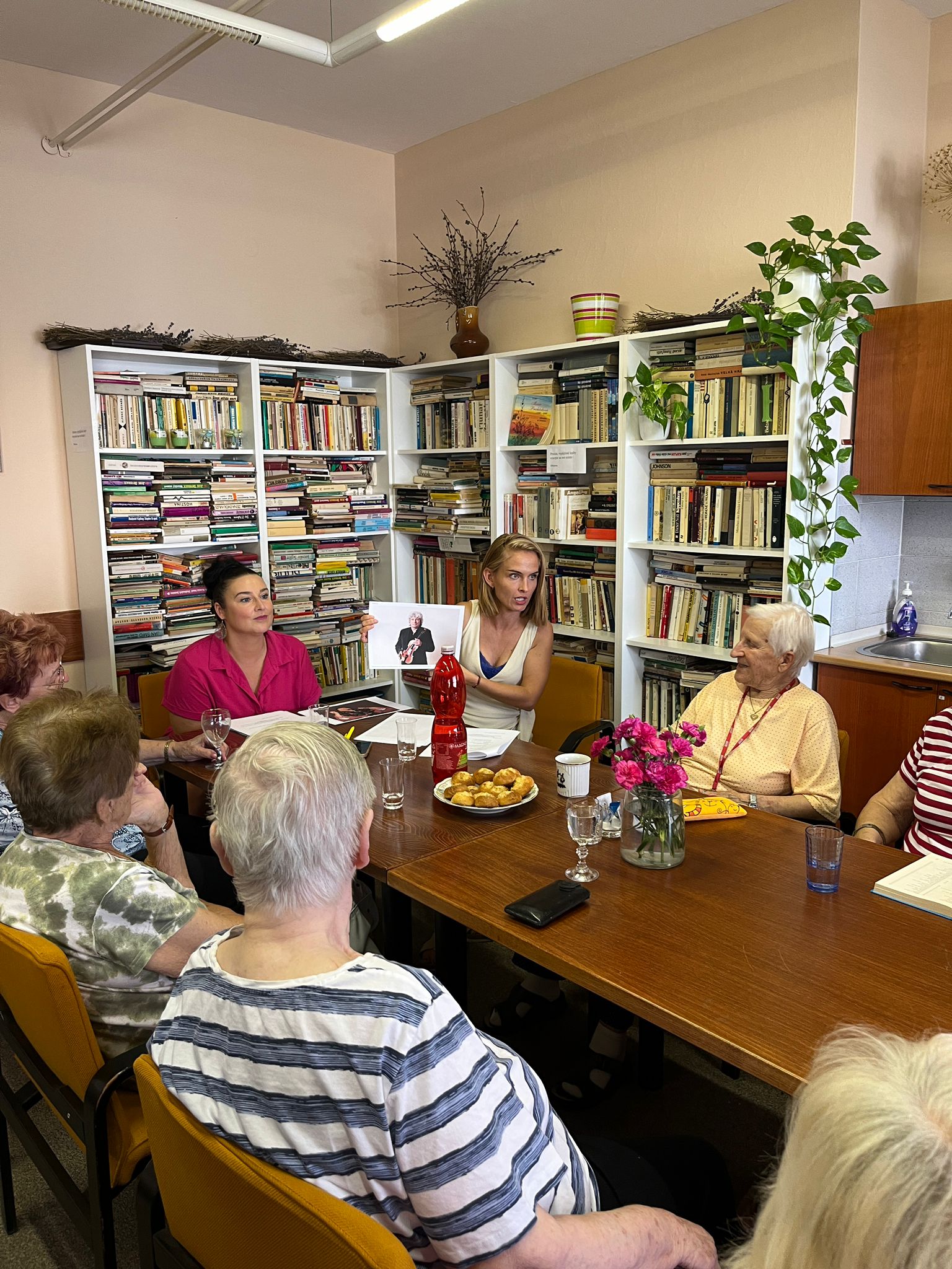 V listopadu proběhla debata o Dušičkách a různorodém pojetí svátku zesnulých ve světě. Připomněly se pranostiky spojené s listopadem a také přítomní zavzpomínali na významné nositele jménem KAREL, který zrovna slavil svátek. Odpoledne bylo doplněno o kvízy a hádanky na procvičování paměti.