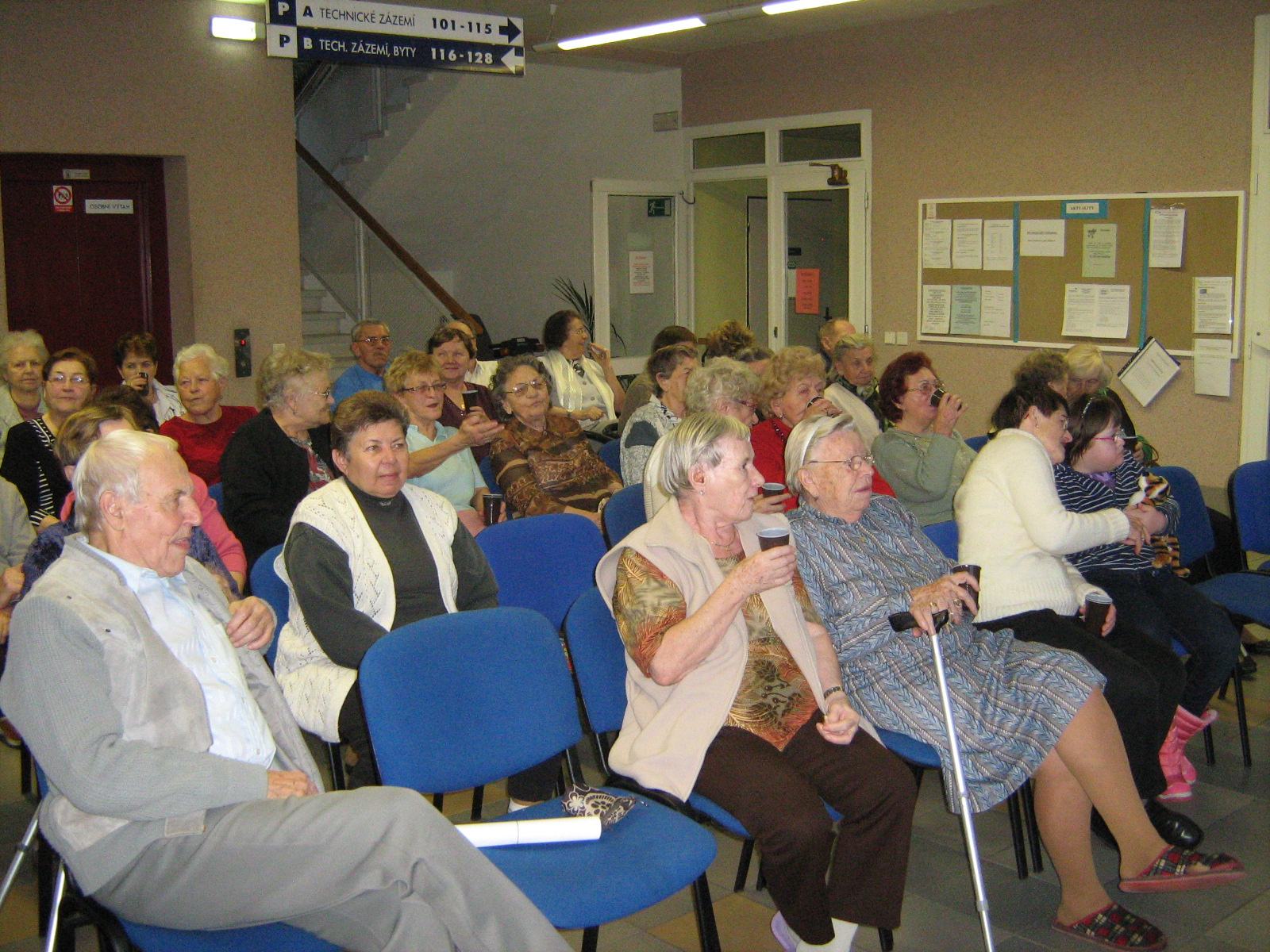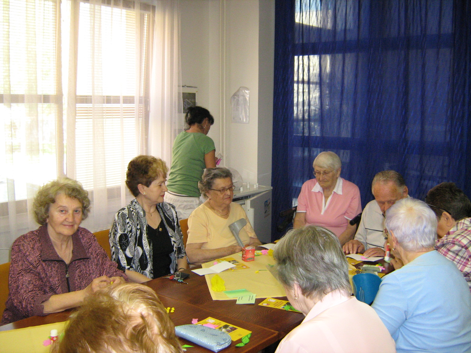 Během této akce proběhla prezentace služby, výroba přáníček s krepovými květinami, cvičení paměti a na závěr zpěv lidových písní.